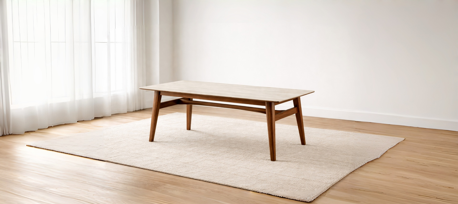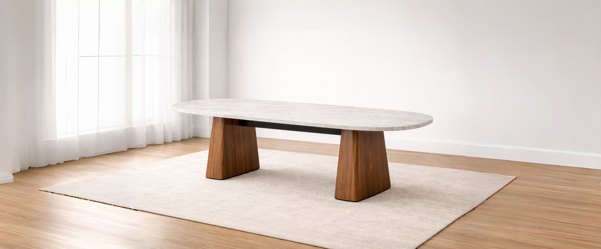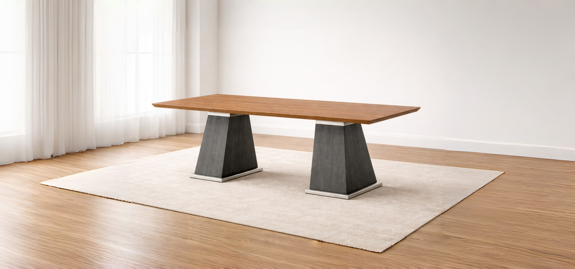 Esstisch rechteckig mit nussbaumholzplatte und grauen metallfüßen